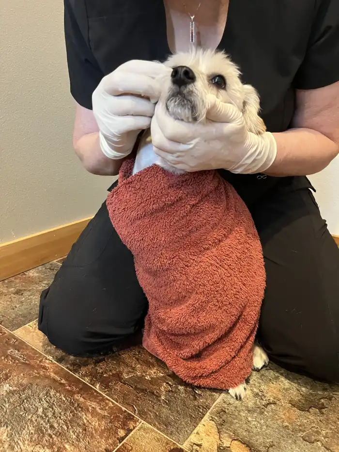 Because cleaning your dog’s eyes and their ears, trimming facial and ear hair, brushing their teeth, and trimming their nails are health care tasks that will be repeated regularly during your pet’s lifetime, she must get used to the process and accept it.