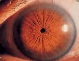 In severe untreated cases, these symptoms may progress to cataract [FIG 12] formation, retinal degeneration or retinal detachment [FIG 13], lens displacement (lens luxation or lens subluxation) [FIG 14], globe enlargement secondary to glaucoma (buphthalmia) [FIG 15], globe shrinkage (phthisis bulbi) [FIG 16] or blindness.